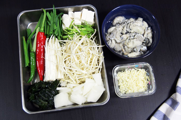 400g oysters, rice (3 bowls), dried seaweed (for rice spoon) 1-1.5 tablespoon, tofu 1/4 mo