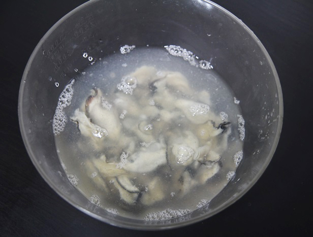 If you put radish juice in the oyster and stir it evenly, foreign substances (red) attached to the oyster will be blackened in the radish juice and removed neatly. When rinsing, soak it in thin salt water and rinse it several times.