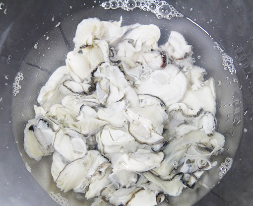 First, put enough water in an empty bowl, release salt, and add oysters.